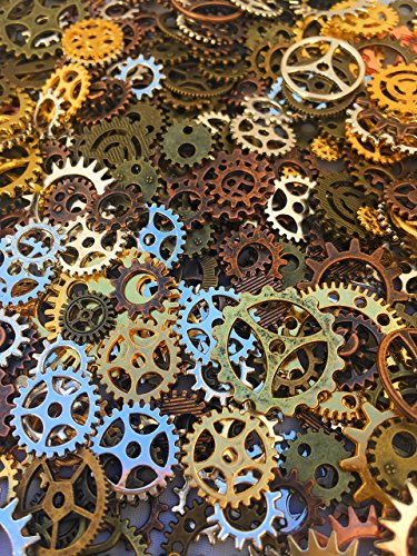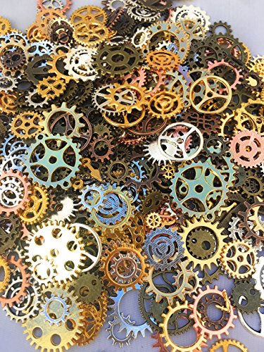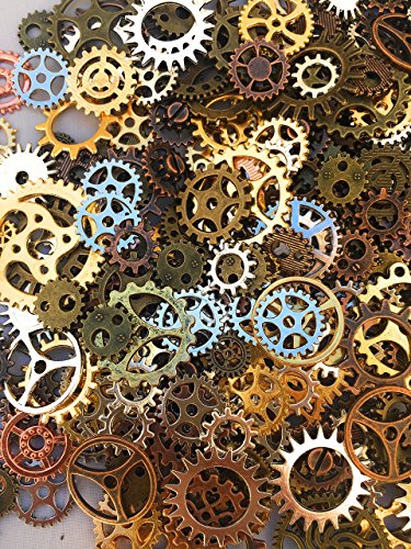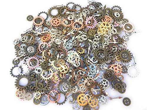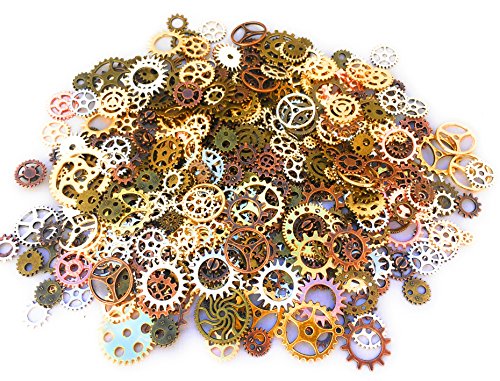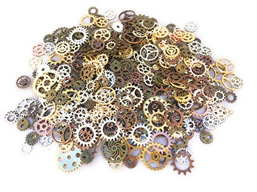 500 PCS Steampunk Gears Antique Assorted Mixed Color Vintage Silver Gold Bronze Jewelry Scrapbooking Charms Wheel Cog DIY ART Random Shapes and Sizes Made By Mello Products