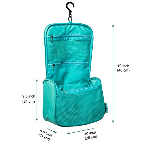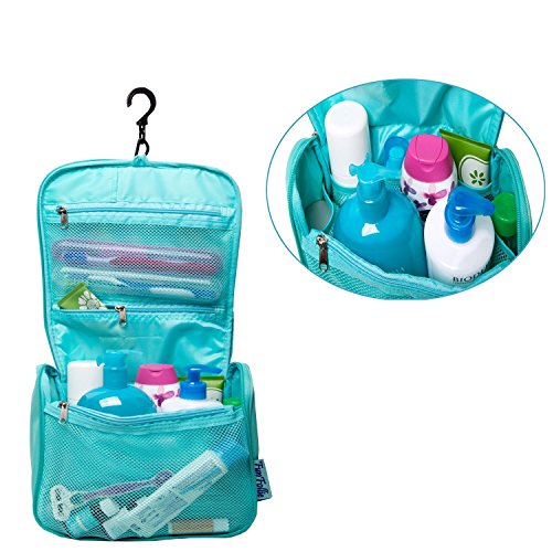 - PRACTICAL AND SPACIOUS, with 5 open mesh pockets and 3 zippered pockets, our Lightweight Travel Toiletry Bag allows you and your family to store all your travel essentials in one place, easily Visible and well Sorted. Made of durable nylon fabric and Fully Padded for 100% Protection & Strength, our Cosmetic bag is Washing machine friendly. Compact and Practical, the Toiletry Organizer Bag features a Rotating Hook for easy Hanging where you need it, on the towel rack, shower rod or in the closet.