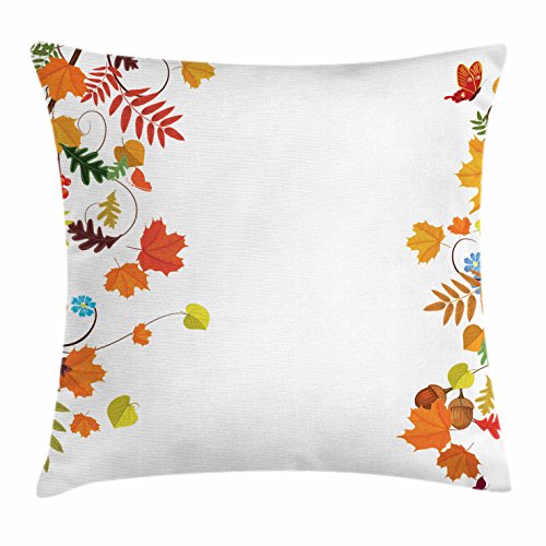 (Ambesonne)/Bedding Bath/Bedding/DIRECT FROM USA/Harvest Throw Pillow Cushion Cover by Ambesonne, Colorful Seasonal Maple Aspen Leaves Frame Fal...