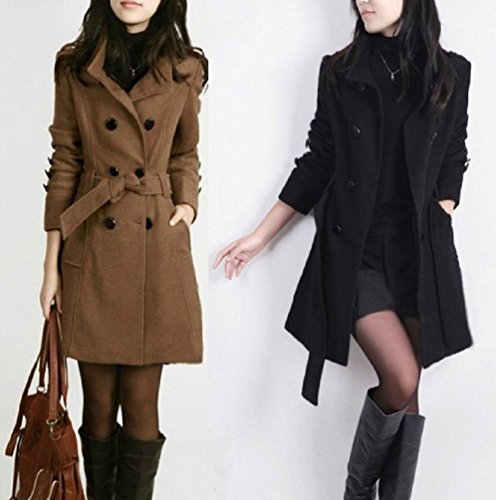 -. Feature : 3シーズンで愛用していただけるトレンチコートは秋から春にかけての定番アイテムです♪非常にシンプルなデザインになっておりますので、組み合わせるトップスとボトムスは自由に♪柄物でバランスを取るもよし、シンプルにまとめて少し大人な雰囲気に見せるもよし、お持ちのお気に入りのアイテムと自由におしゃれを楽しんでくださいね♪ / 肌寒い時期でしたら、手袋とストール、マフラーを組み合わせても可愛いです。暖かくなったら、思い切って前ボタンは止めず、インナーを見せるスタイルにするとすっきりします。ボタンを留めて着用するときは、付属のベルトの使い方に工夫しましょう。そのままフロントで締めても良いのですが、フロントやサイドでリボン結びにすると甘い印象になります。 / フロントまでベルトを通さず、バックに戻して結ぶのも、フロントがすっきりしますよ。また、スキニーなどの、細身のパンツと合わせるのもすっきり見えるでしょう。色が濃い目で細身のデニムパンツと、スニーカーを合わせるときれいめでかわいい取り合わせに♪様々な印象に大変身するのもトレンチコートの大きな利点です♪ / 秋から春にかけて、3シーズンのド定番アイテム!レディース用トレンチコートになります。カラーはブラック、ブラウンの2色から、サイズM、L、XL、2XLの4サイズからと大きいサイズまで種類豊富に取り揃えておりますので参考にご自身にあったものをお選びくださいませ。※海外品のため小さめのお作りになっております。普段着ているサイズより2サイズほど大きいものをおすすめいたします。細身の方も普段着ているサイズより1サイズ上をおすすめいたします。 / 好みや年齢を問わず、幅広く愛されるトレンチコートはワードローブのマストアイテムではないでしょうか?着るだけで清楚で大人な印象に♪男性ウケも抜群のアイテムです!困ったときのアウターにも、デートやフォーマルシーンなどの大事なイベントにも、もちろん普段着としても様々な場面で大活躍な一着になること間違いなしです☆