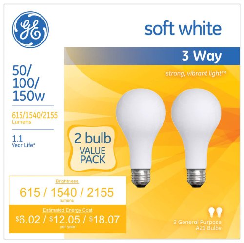 - Title : GE Lighting 97763 50/100/150-Watt 615/1540/2155-Lumen A21 3-Way Light Bulb, Soft White, 2-Pack