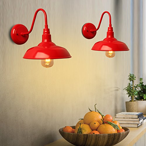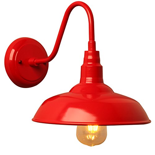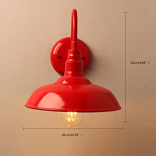 MASO HOME MS-61272-1 Vintage Retro Industrial Metal Wall Sconce Aisle Wall Lamp Barn Farmhouse Light Fixture Mount to Wall (Red)