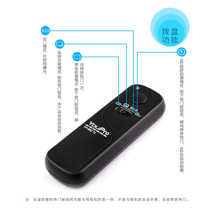 Model: YP-860 wireless shutter cable / remote control