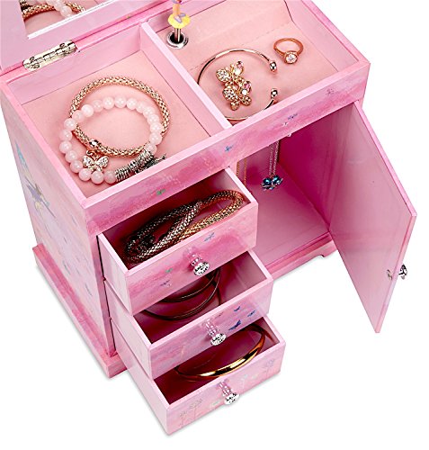 Ideal for storing girl's jewelry including bracelets, necklaces, and other precious keepsakes.