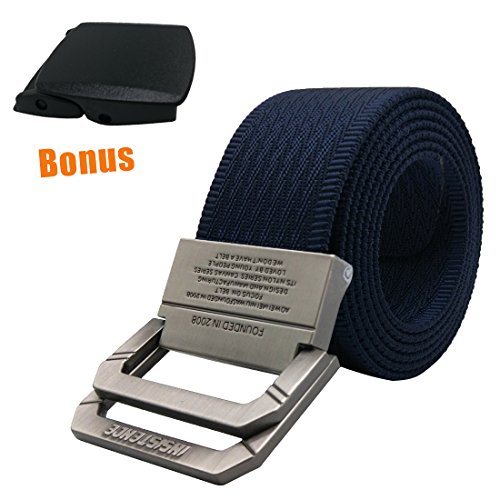 -. Feature : This product includes ONE NYLON BELT(with d-ring buckle metal)+ BONUS YKK plastic buckle. Two buckles can be replaced, buy it, you can get two different buckle belts. / The nylon webbing is soft, breatheable, lightweight, dry fast, sturdy and durable. Suit for outdoor sports/hiking/camping/running/hunting.. Your utility tactical belt. / This nylon web belt can be cut the length freely, best for your waistline below 42". To be your outdoor belts or daily work belt, business travel belt or casual belt. / Exquisite black gift box package, can be the best gifts for men. The fashion, utility men's belt. / Affordable P.R.Ice, 7/24 service and lifetime guarantee. Don't like or any problem, 100% refund without worries.