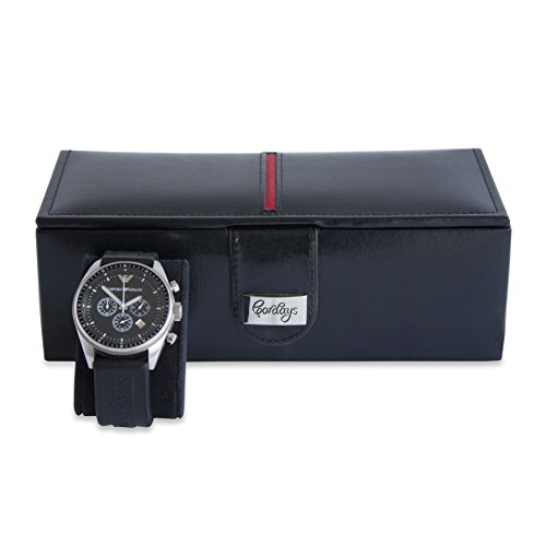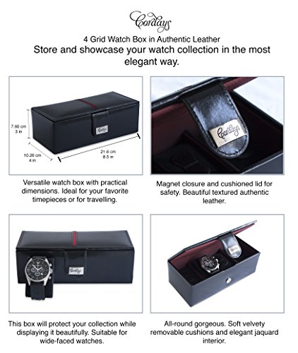 Cordays Deluxe 4 Grid Watch Box Finely Handmade in Black Genuine Leather CDM-00001