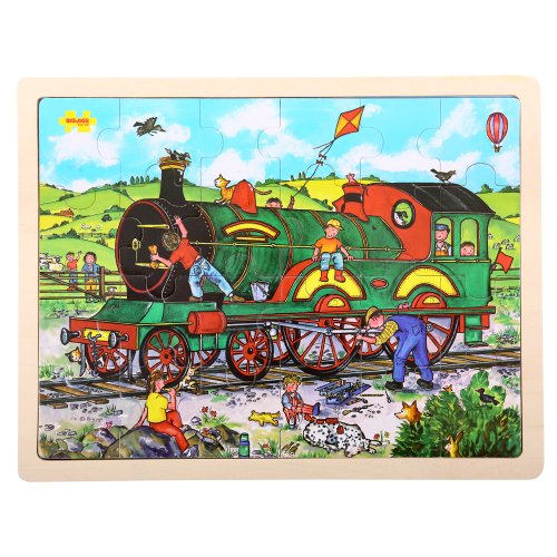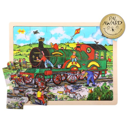 -. Feature : Bigjigs Toys Tray Puzzle - Train is a fun learning tool every little engineer is sure to enjoy / Working with puzzles helps children develop dexterity and concentration / Suitable for children 3 and over / Puzzle measures 12.6'' x 16.5'' / Silk-screened on wood; puzzle conforms to ASTM and CPSIA safety standards