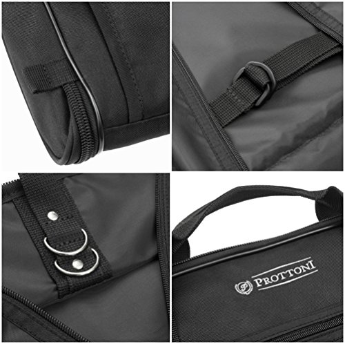 -. Brand : Prottoni -. Color : Black -. Department : mens -. EAN : 0683203897235 -. Feature : BUILT-IN HOOK for easier handling and loading of garments. Now you can hang your suit bag wherever you are without the need of unloading it. / DURABLE POLYESTER with PVC lining and high quality metal zippers ensure that your clothes will securely get to your destination. / HEAVY DUTY shoulder strap with YKK SnapHooks and reinforced metal clips allow you to take everything you need without worrying. / TWO INTERIOR METAL RINGS that fit up to 6 hangers make our garment bag easy to use. / FOUR OUTSIDE POCKETS let you fit everything you need in our travel garment bag - ABOVE ALL PROTTONI ENSURES THE HIGHEST QUALITY due to our control of the whole production process from fabric sourcing to manufacturing in Europe. -. ProductGroup : Apparel -. ProductTypeName : LAGE -. Size : One Size -. Title : Prottoni 44" Premium Garment Bag - Built-in Hook - Shoulder Strap - Suit Bag with YKK Elements -. UPC : 683203897235