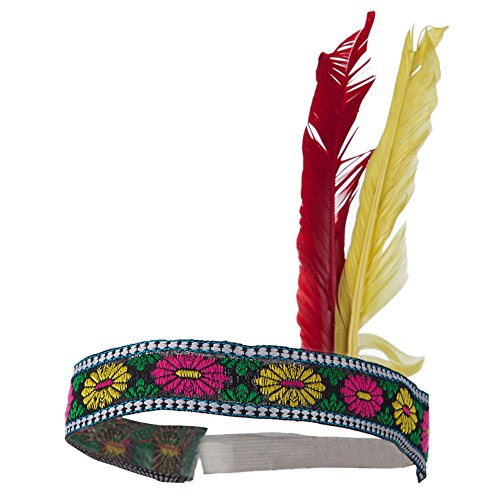 -. Feature : Native American Headdress Headband with Two Feathers / Made of 100% Polyester / One Size Fits Most with Elastic Band / Band Measures 1 1/4" Wide, Feather Measures 9" Tall / Hand Wash Only