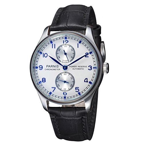 -. Binding : Watch -. Brand : Fanmis -. Color : White -. Department : Mens -. Feature : Round watch featuring round white dial with power reserve windows, sword-shape hands, and transparent case back / 42 mm stainless steel case and sapphire crystal dial window / Japanese automatic movement with analog display / Features black leather strap with buckle closure / Water-resistant to 3 ATM -. Label : Fanmis -. Manufacturer : Fanmis -. MPN : PN K560 -. PartNumber : PN K560 -. ProductGroup : Watch -. ProductTypeName : WATCH -. Publisher : Fanmis -. Studio : Fanmis -. Title : Fanmis White Dial Sapphire Seagull Movement Power Reserve Portugal Style Automatic Watch