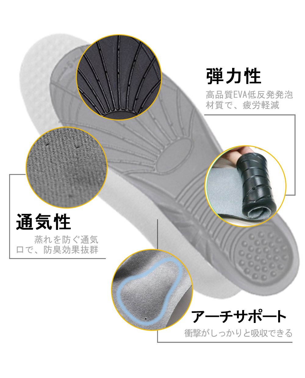 Commuter, commuting, standing work, sports and walking, marathon, tennis and other feet and knees tend to be painful, this insole has the effect to reduce the repulsive force of the shock absorbing shock and is widely used.