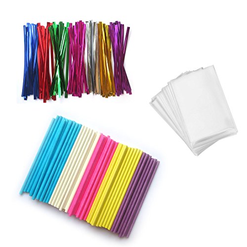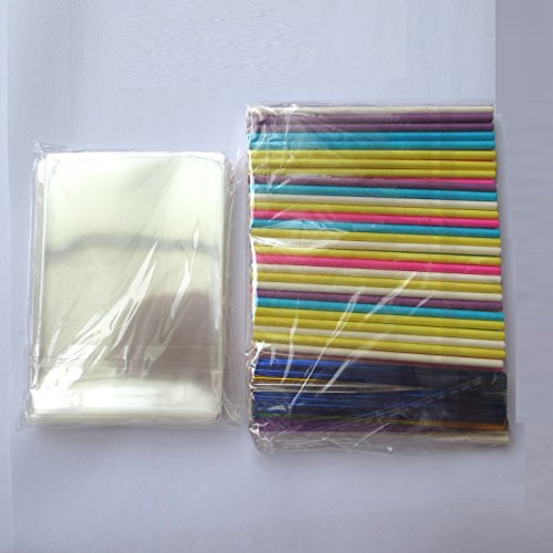 SarSean 100PCS OPP Bags and 100PCS Lollipop Sticks and 105PCS Twist Ties (Combo 1)
