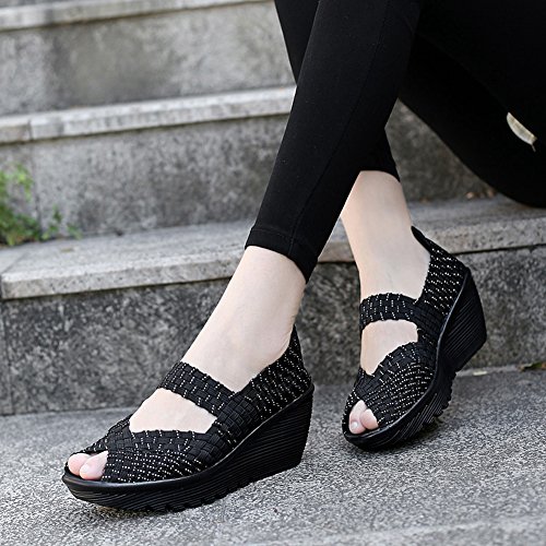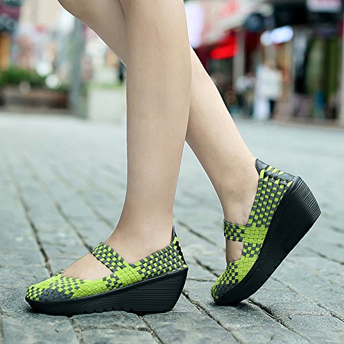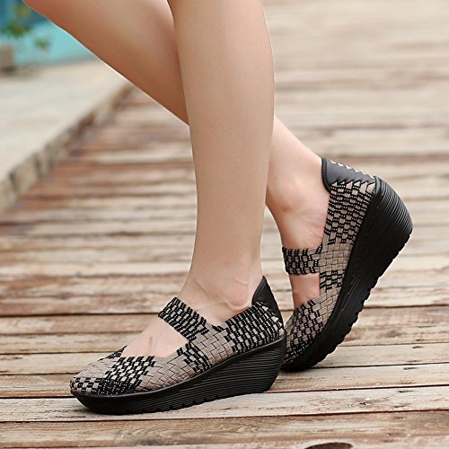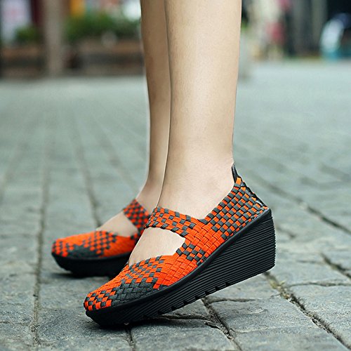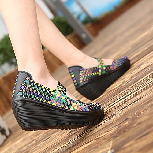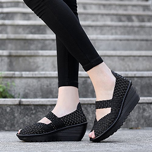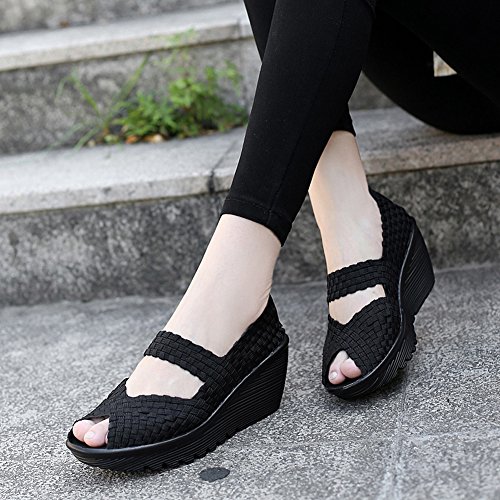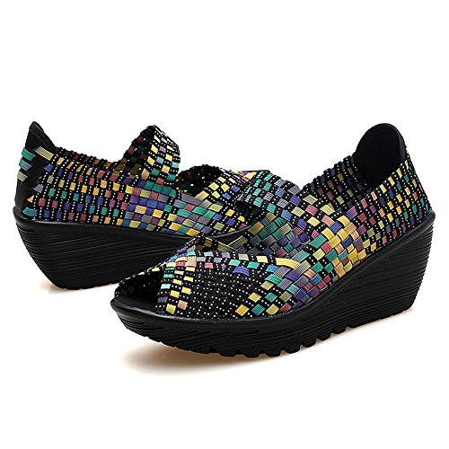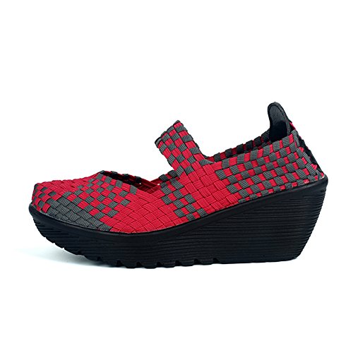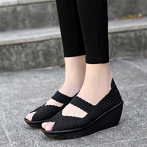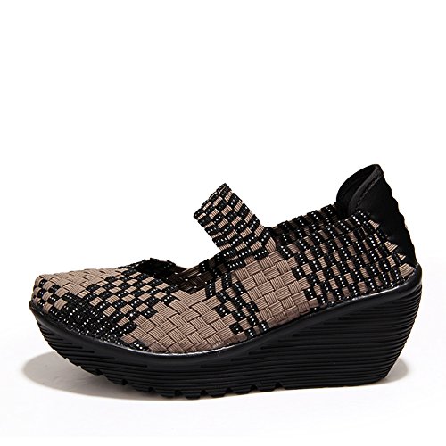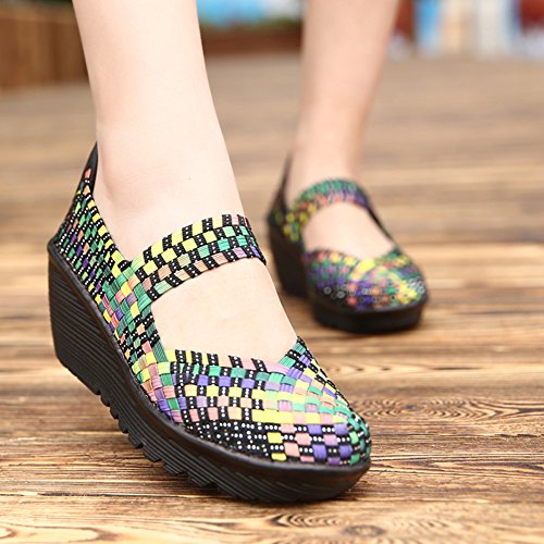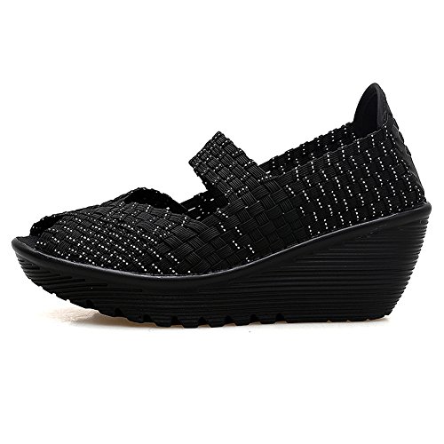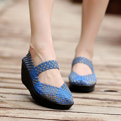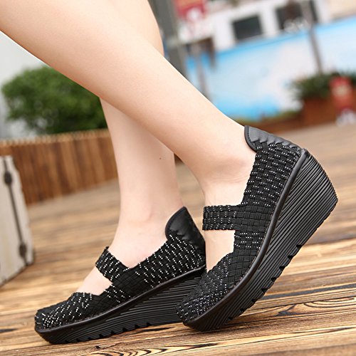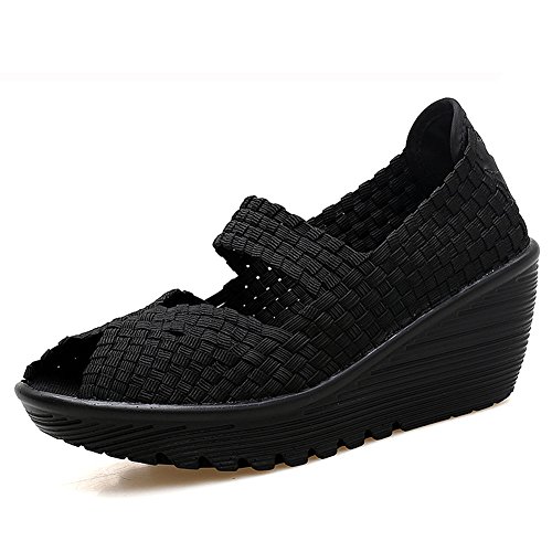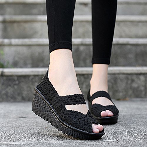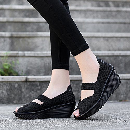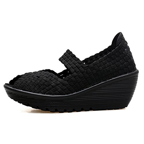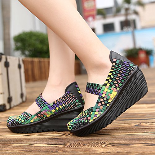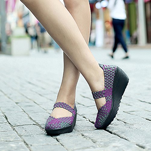 Binding : Apparel Product Description HKR Women Comfort Weave Wedges Sandals High Platform Mary Jane Shoes -TWO TYPES OF CLOSUTE: Closed toe and open toe for choose. - QUALITY GUARANTEE : The weave platform wedges sandals is super comfy and the upper is 100% stretchy elastic. - SUPER COMFORTABLE : If you stand full time for at least 10-hour shifts or walk around a lot with your job. We highly recommend you to pick this weave wedges shoes.The weave material wedges shoes makes it very flexible. Your back,hips and calves will feel great all day. - VERSATILE STYLISH : These wedge sandals with mary jane strap are cute and fun, dressy enough for working, walking, go out with friend, shopping or dance on the weekends. You will get tons of compliments every time you wear this platform wedge weave shoes. - INCREASING HEIGHT : They're great especially as transition shoes for spring and fall. You can wear this wedge pumps on vacation with pants, skirts and capris, The platform weave sandals with a good high wedge heel - so it doesn't feel like a high heel, but you will get good height. Size Chart 1 inch= 2.54 cm US 5.5 = Asia size 35 = Feet length 8.86 inch (heel to toe) US 6 = Asia size 36 = Feet length 9.06 inch (heel to toe) US 7 = Asia size 37 = Feet length 9.25 inch (heel to toe) US 7.5 = Asia size 38 = Feet length 9.45 inch (heel to toe) US 8 = Asia size 39 = Feet length 9.65 inch (heel to toe) US 8.5 = Asia size 40 = Feet length 9.84 inch (heel to toe) US 9 = Asia size 41 = Feet length 10.04" inch (heel to toe) US 10 = Asia size 42 = Feet length 10.24" inch (heel to toe) 0