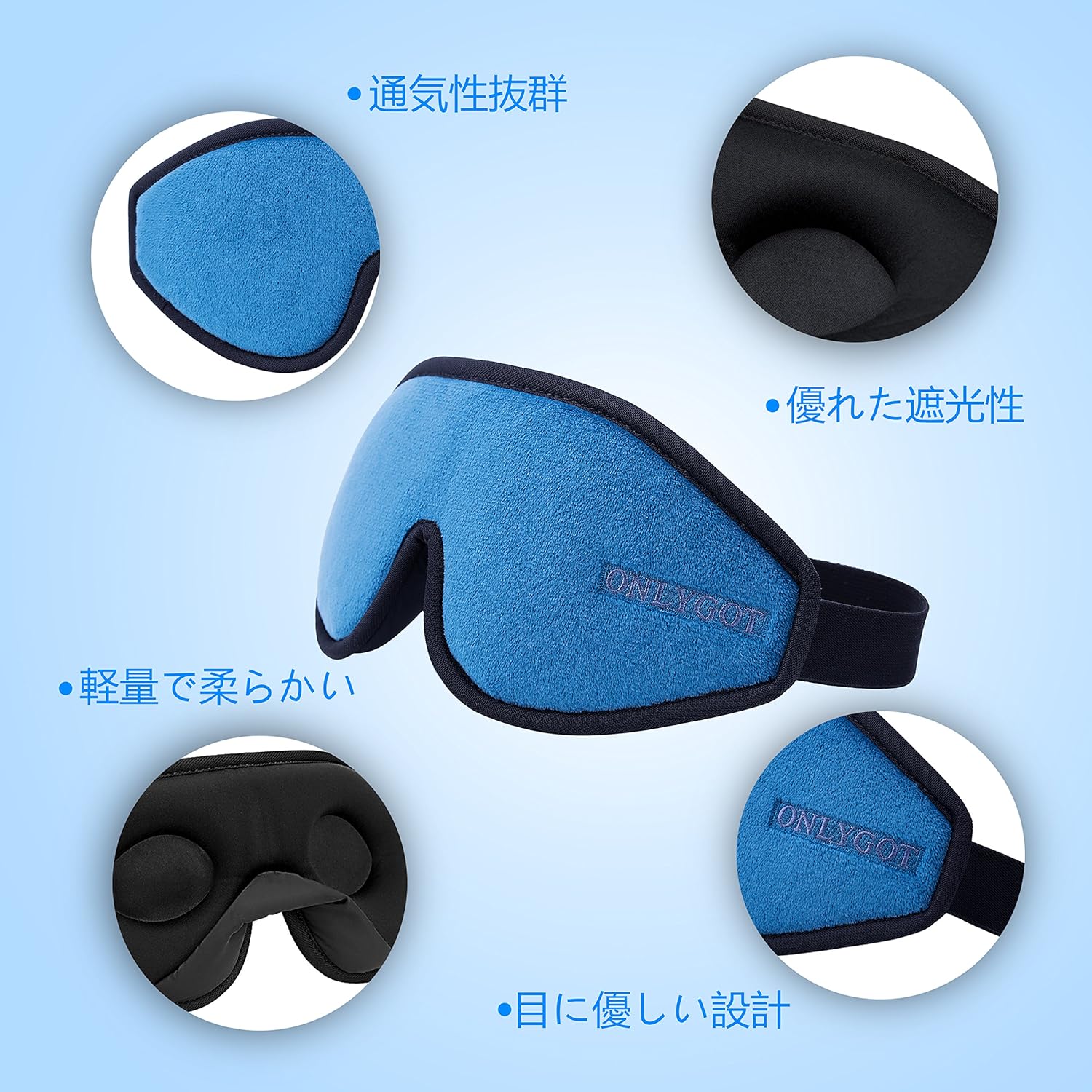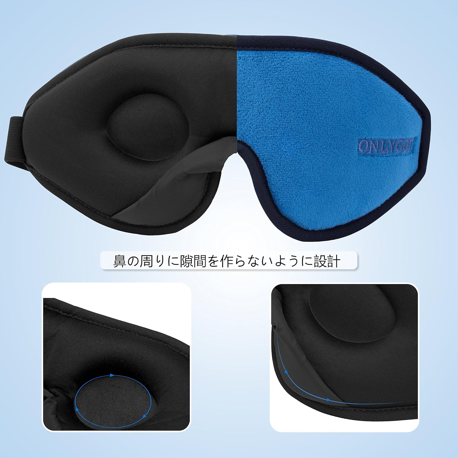 立体縫製により目元にしっかりフィットし、顔への圧着感が少なく自然な着け心地が得られ、夜中にぐっすりと寝るとか、飛行機や新幹線・バスやオフィスでの仮眠時にも最適!!