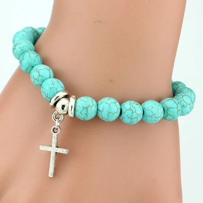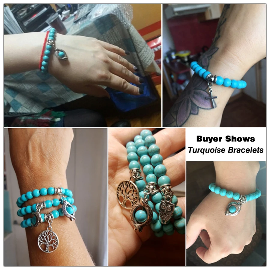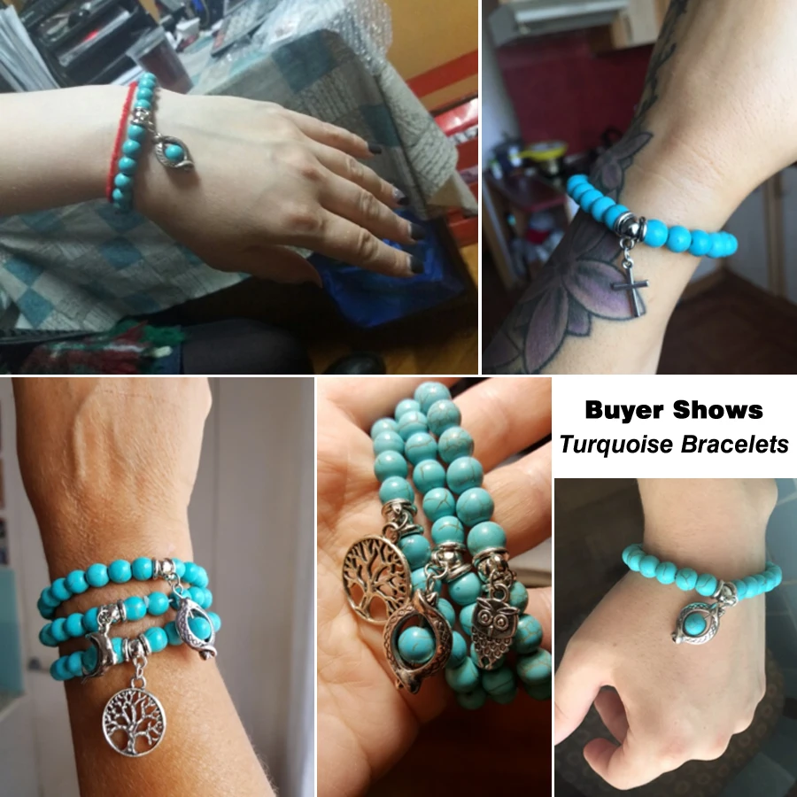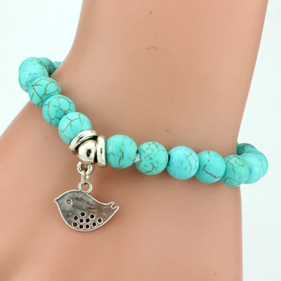 Charm Bracelets Color:Imitation Turquoise & Silver Pendants