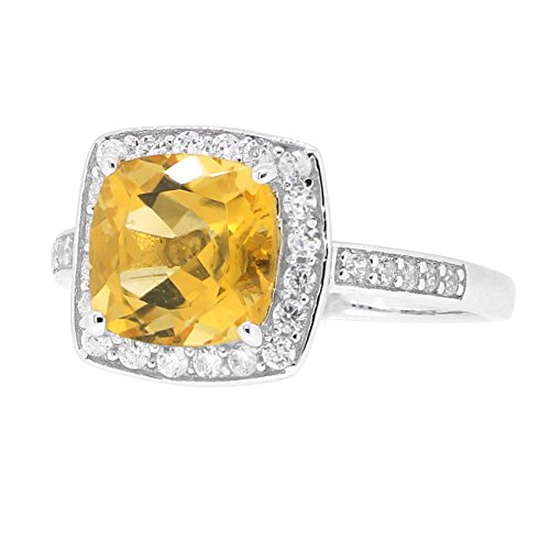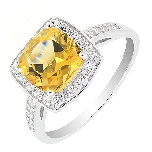 -. Title : Vintage Style Sterling Silver Cushion Cut Genuine Citrine Halo Ring (2 CT.T.W)