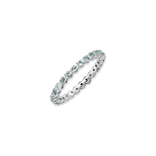 -. Title : Silver Stackable Prong Set Aquamarine Band
