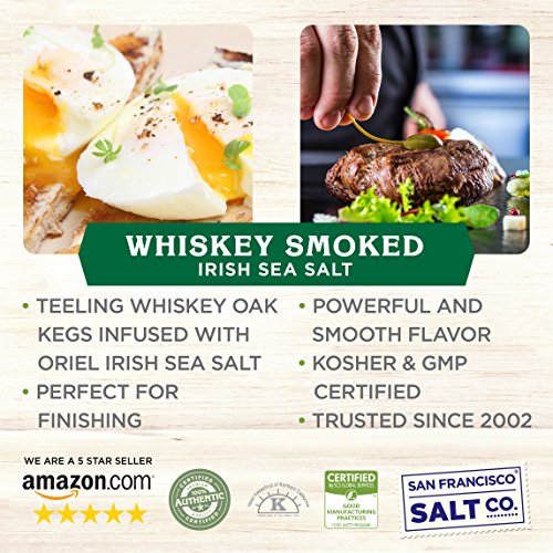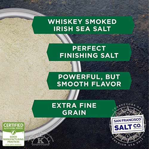 - CERTIFIED KOSHER AND 100% NATURAL - Our Irish Whiskey Smoked Sea Salt is Kosher Certified, Non-GMO, and does not contain any MSG, Soy, Gluten, Dairy, or anti-caking agents. We package in our U.S.A, GMP certified packaging facility that is 3rd party audited, by SCS Global.