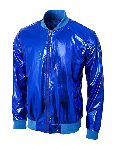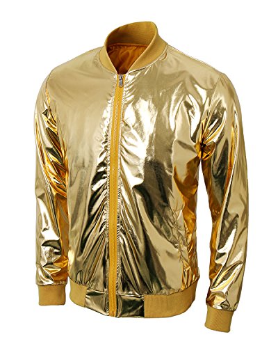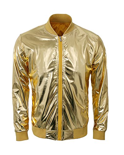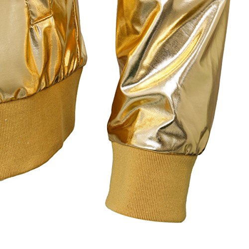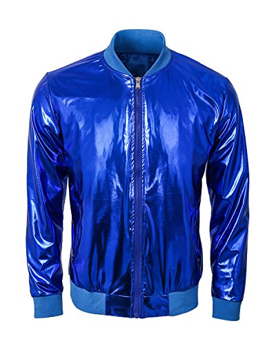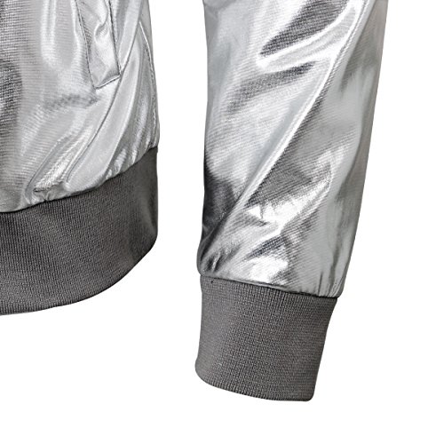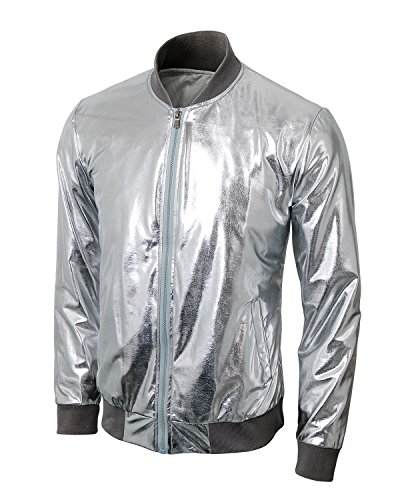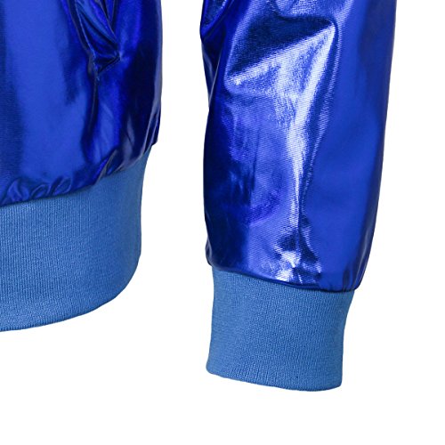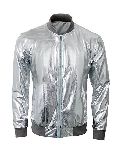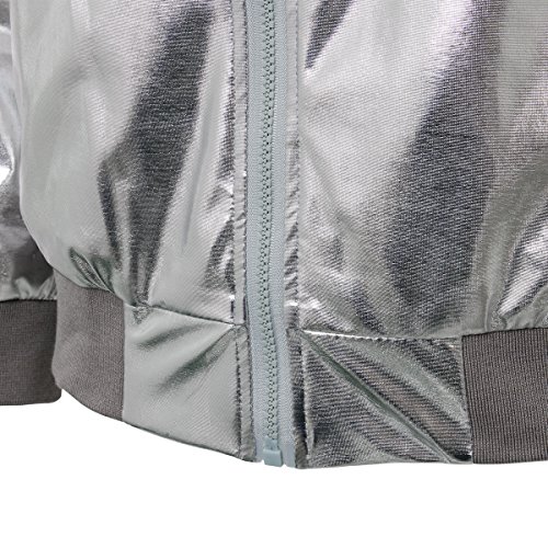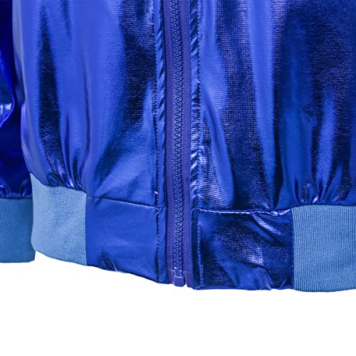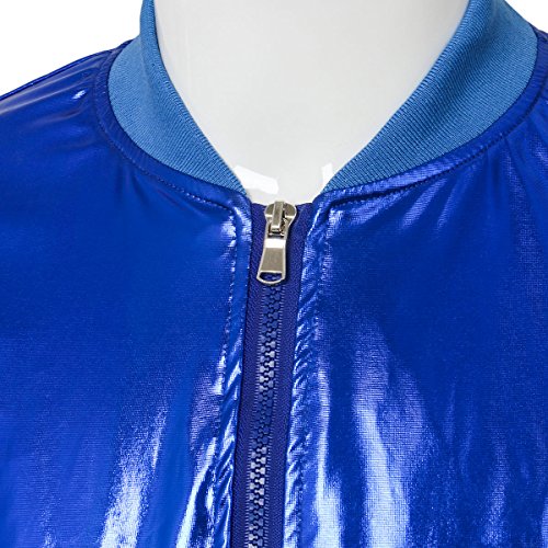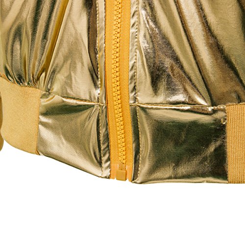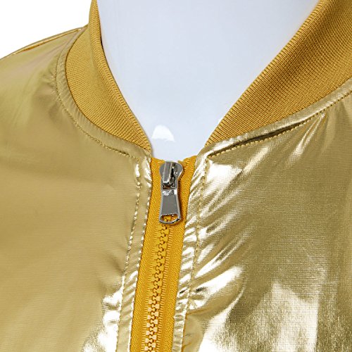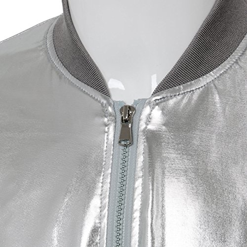 Cusfull Baseball Jacke Metallic Glanzend Nightclub Party Tanzen Casual Kostum Mit Reissverschluss Up Fashion Bomber Jacke