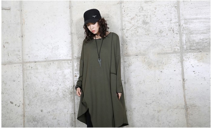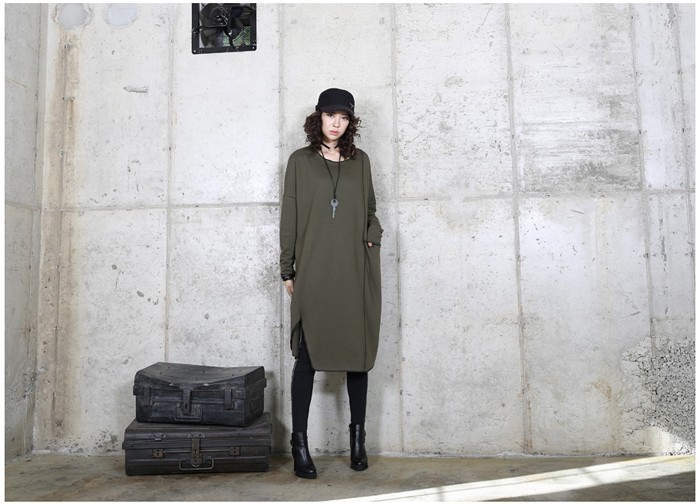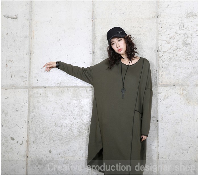 商品名:ワンピース レディース 膝丈 無地 長袖 秋 2017 モード系 個性的 40代 ファッション