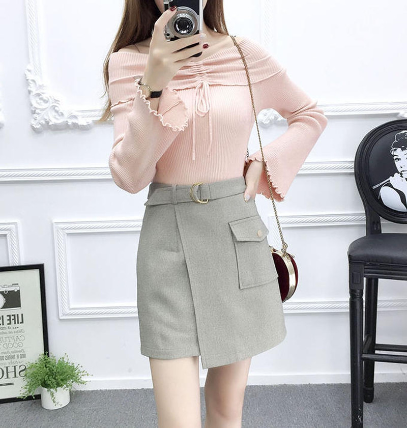 ♢ポイント♢ オフショルニットとラップスカートの2点セットです。 デートコーデはこれで決まり☆