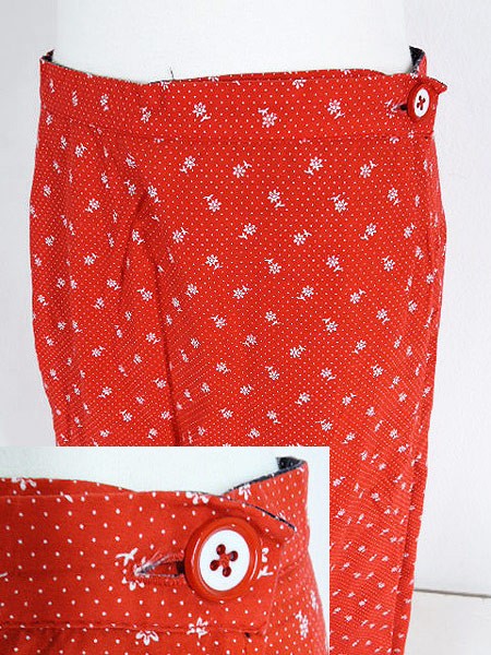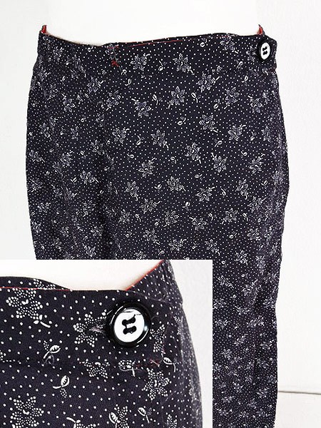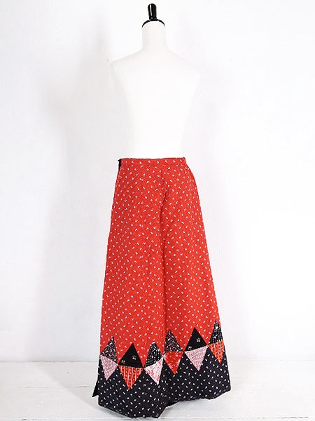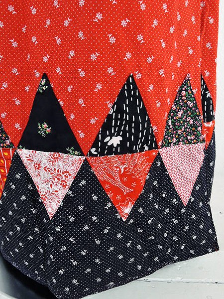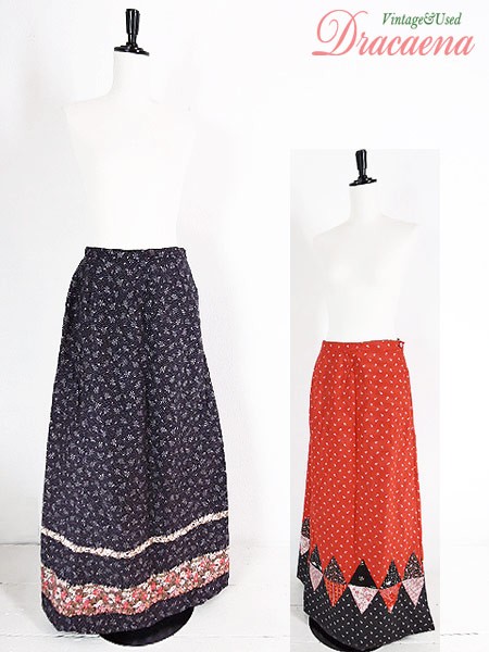 くすんだ黒地はクラシカルな花柄のライン入りで赤はパッチワーク柄。古着やレトロ好きにはたまらないデザインです☆