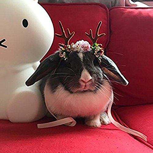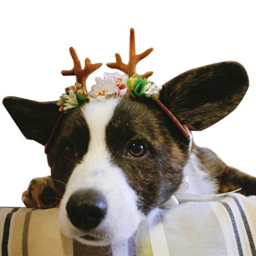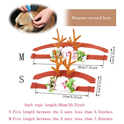 -. Feature : SIZE: S Fits length between the 2 ears less than 5.5inches.Each rope length:26cm/10.2inch. / Made of comfortable and durable cloth,romantic flowers,cute elk. / Lightweight headband with adjustable rope.The straps can trap the ears, to prevent the hat fall. / Antler style makes your pet more lively, let your pet join our Christmas party! / Suitable for puppies, cats and rabbits, perfect for these occasions: festivals(Halloween/Christmas), parties, daily decoration.