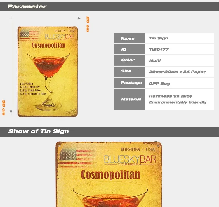 Metal Wall Plaque/Bar Cafe Wall Decor:7.8inch*11.8inch