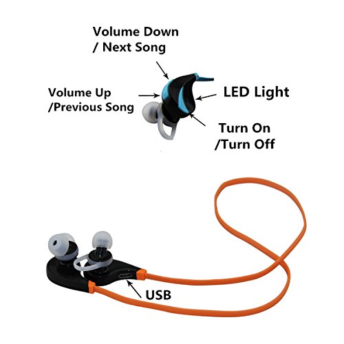 iLepo®G6 CSR8635/V4.0+ERD Wireless Bluetooth Stereo Sports In-ear Earbuds Noise Cancelling Headphones/Microphone (Orange)