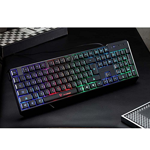 InRich Full-size Colorful LED Backlit USB Wired Gaming Keyboard for Desktop PC Macbook Dell Lenovo HP
