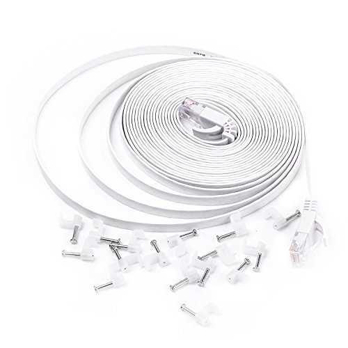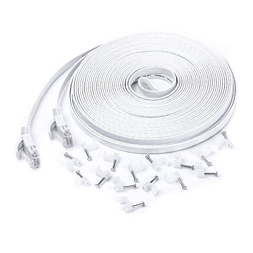 Eightwins-Ethernet Cable Cat6 Flat 50ft White,Network Cable Cat 6 Flat Slim Ethernet Patch Cable, Internet Cable With cable nails-50 Feet White(15 meters)