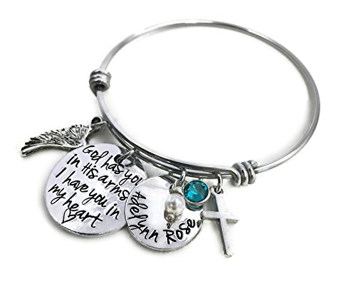 -. Brand : Danielle Joy Designs -. Department : Women -. ProductGroup : Guild Product -. ProductTypeName : GUILD_JEWELRY -. Title : Adjustable God Has You in His Arms I Have You in My Heart Memorial Bangle Bracelet - Hand Stamped Jewelry - Personalized Jewelry