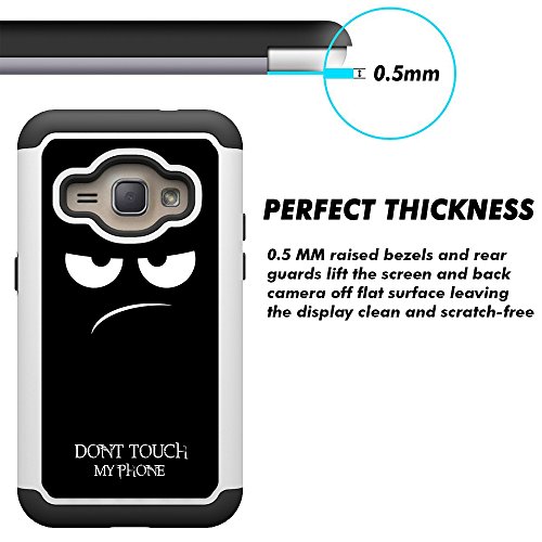 -. Feature : Compatible with Samsung J1 2016/J120(AT&T)=Samsung Galaxy Amp 2(Cricket)=Samsung Galaxy Express 3(AT&T GoPhone) / 2 in 1 structure - Inner soft silicone gel and outer hard plastic shell with leather P.R.Int pattern design / Silicone gel grip your phone tightly and prevent it from scratching/bumping/droping, outer snap-on hard shell provides double protection on your device / Perfect cut outs allow convenient access to all functions, cameras, buttons and ports / Variety stylish pretty funny art designs decorate your phone beauty and personal