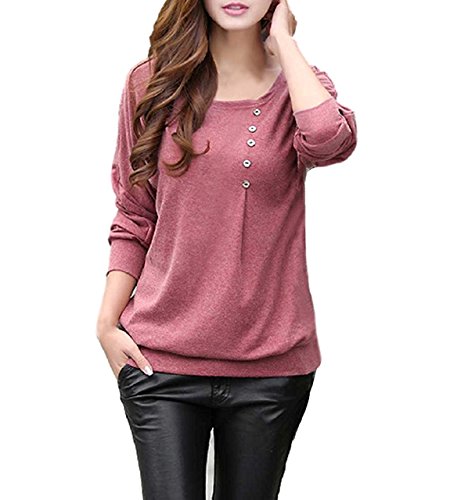 -. Feature : サラッとした肌ざわりで、この季節に大活躍間違いなしの長袖Tシャツ(レディース・カットソー)です。胸元にあしらわれた可愛いボタンがアクセントになった、とてもお洒落で旬な1枚。クルーネックの丸襟デザインがデコルテを綺麗に見せてくれて、セクシーな大人感も漂わせるフェミニンなレディース・トップスです。ドルマンスリーブが、二の腕をカバーして華奢見せしてくれるデザインです。ウエストラインを意識した女性らしい美ライン・シルエットが体型カバー効果もあり、デイリーユースはもちろん、オフィスカジュアルやママコーデにもオススメです。 / 通気性が良く、肌ざわりも良い、伸縮性のある素材で、着心地よく清潔感のあるカットソーなので、シーズンやシーン、テイストを問わない着回し力抜群のファッション・アイテムです。女性らしいエレガントな雰囲気を醸し出し、ジャケットなどを羽織ればきちんとコーディネートにも対応可能です。カジュアルにもシックにも、取り入れるだけでオンナ度が上がる便利なロンT。カジュアルなデイリーユースにも、ビジネス、オフィス、通勤、通学、デートにも。フォーマルやちょっとしたオケージョン(パーティ、結婚式、二次会、お呼ばれ、入学式、入園式、卒業式、卒園式、発表会、演奏会、七五三、ママ会、女子会、イベント、季節行事等)にも◎。 / ナチュラルな雰囲気のシンプルな中に、胸元のボタンがワンポイントになった大人可愛いデザイン。ボトムにINしても、そのままさらりと着ても◎ スカートでもデニムでもOKで、ボトムスを選ばないのも嬉しいオシャレアイテム。デニム、ショートパンツ、ワイドパンツ(ガウチョパンツやスカーチョ)との楽ちんコーデや、キチンと感のあるタイトなボトムス・スキニーパンツと、ブーツやヒール、パンプスなどのシューズを合わせれば、ぴりっと辛口にまとまった、大人のカジュアルコーディネートが完成します。 / 毎日着ても飽きのこない着まわし力の高いシンプルな定番デザイン。カラーは人気のブラック、グレー、レッドの無地3色をご用意しています。春、夏はインナー(キャミソール、タンクトップ)の上に羽織って、袖を軽くロールアップしても。秋、冬にはやアウター(セーター チェスター トレンチ ダウン コート ジャケット)やファッション小物(ストール マフラー スヌード)などを合わせてコーデを楽しんでくださいね。 / リピ買い続出の人気アイテムでプレゼントにも◎♪ 年齢問わず(20代、30代、40代、50代)受け入れられる伸縮性のある素材でフェミニンなデザインのレディーストップス。長袖、半袖ともに季節問わず(春、夏、秋、冬)オールシーズン活躍すること間違いなしの便利アイテムです。 【カラー】ブラック(黒色)、グレー(灰色)、レッド(赤色)【サイズ 】M、L、XL 【素材】コットン、ポリエステル、裏地:なし、付属品:なし   ※サイズ(寸法)をお確かめの上、ご購入ください。