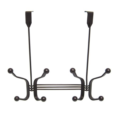 -. Feature : 4-hook over-the-door hanger provides space-saving storage and organization / Bronze finish, double hook, durable steel construction / No Mounting Hardware Necessary; Size: 12.25" x 11.50" X 4"