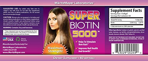Super Biotin 5000 contains 5,000 mcg of Biotin per Softgel