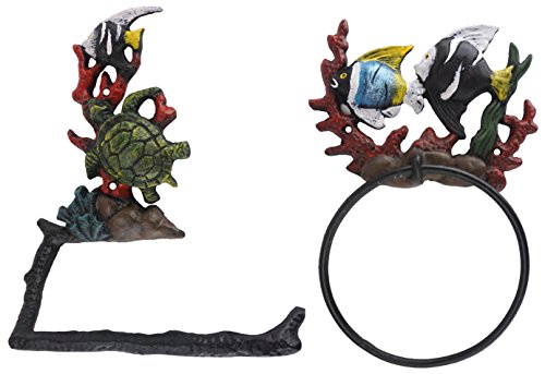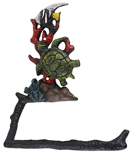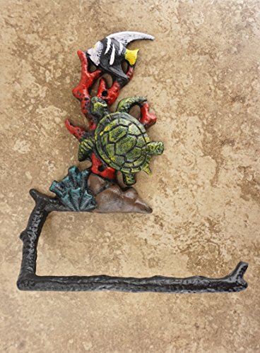 - Cast Iron sea animals and coral Toilet Tissue holder with cell phone tray & Towel Holder, strong heavy duty design made to last for years to come