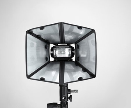 クリップオンフラッシュの光を、21cmx15cm角の面光源としてやわらかく拡散し、自然で、印象的なライティングを実現します。