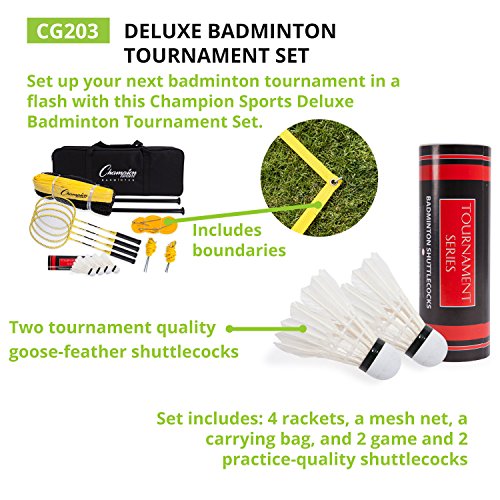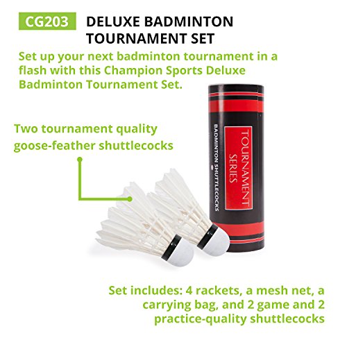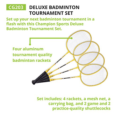 Champion Sports Outdoor Badminton Set: Net, Poles, 4 Rackets, 4 Shuttlecocks & Bag - Portable Equipment for Backyard Games, Team Sports, Adults & Kids