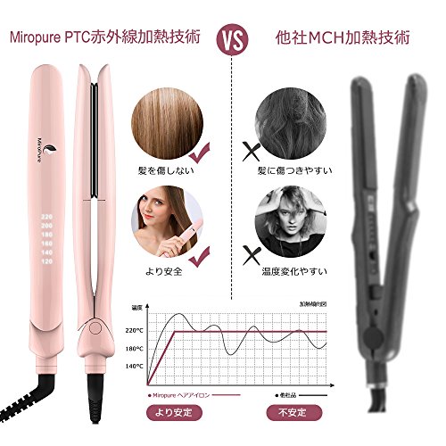 스트레이트 헤어 고데기 스트레이트&컬 양용 최신 적외선 기술발에 친절하 6단계 온도 조절 프로 사양220℃