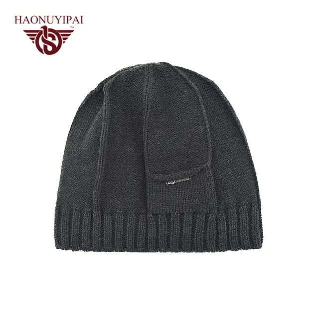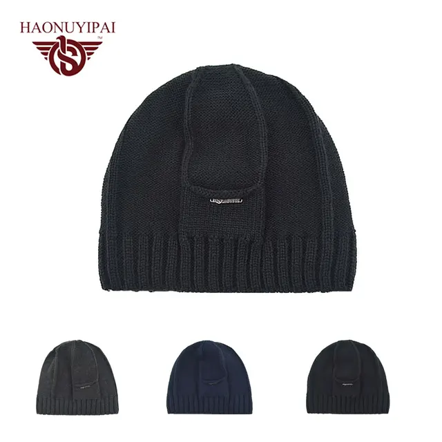 | [해외]남성 Skullies 겨울 울 니트 모자 남성 브랜드 비니 캐주얼 단색 모자 블랙 그레이 네이비 블루 스트라이프 모자 |