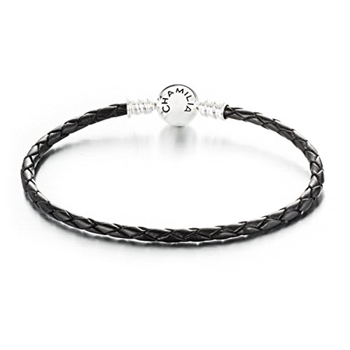 -. Feature : Authentic Chamilia Large Braided Black Leather Bracelet with Round Snap Closure 1030-0126 / Size Large (7.9 in or 20 cm) 1030-0126 / Sterling Silver, 925 & Leather / Round Snap Closure / To make sure you select the right bracelet size, either visit a Chamilia retailer or measure your wrist. To measure your own wrist, measure either an existing bracelet or string that is long enough to fit comfortably around your wrist with enough space for two fingers between your wrist and the bracelet. This will leave enough room to fill your bracelet with beads.