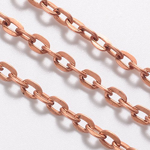 Pandahall 10m(32.80 feet) Red Copper Color Iron Cross Chains for Necklace Jewelry Accessories DIY Making-4.1x3x0.8mm