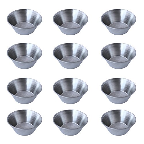 Product Description Enhance presentation of your food with these elegant looking polished stainless steel sauce cups. Can be ideal for sauces, dressings. Easy to use and clean, smooth lips. Package includes 12 sauce cups 0