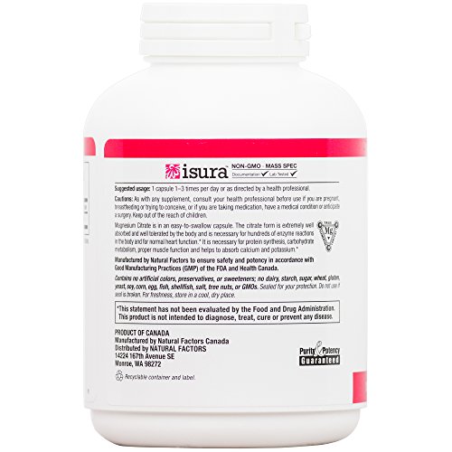 EASILY ABSORBED: Natural Factors Magnesium Citrate is in an easy-to-swallow capsule. The citrate form is extremely well absorbed and well tolerated by the body and supports hundreds of enzyme reactions in the body and promotes normal heart function.