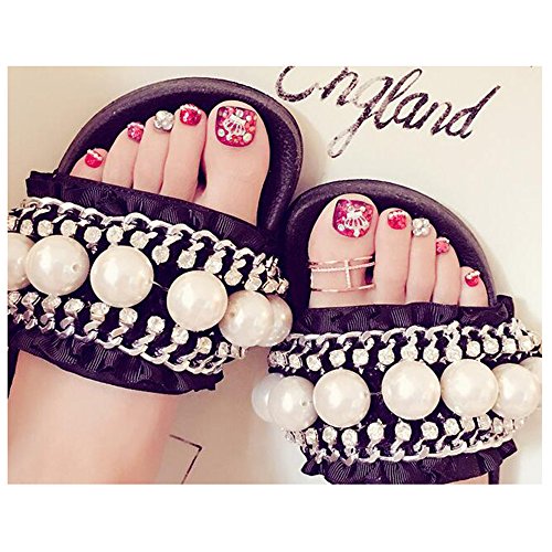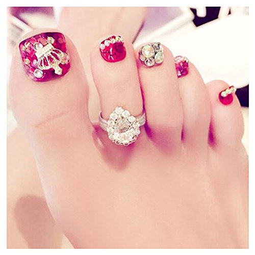 LuckySHD 24Pcs 3D Red Toenail Art with Bling Crown Jewelry Glitter Rhinestone Decor Toe Nail Tips Artificial Toe Nails