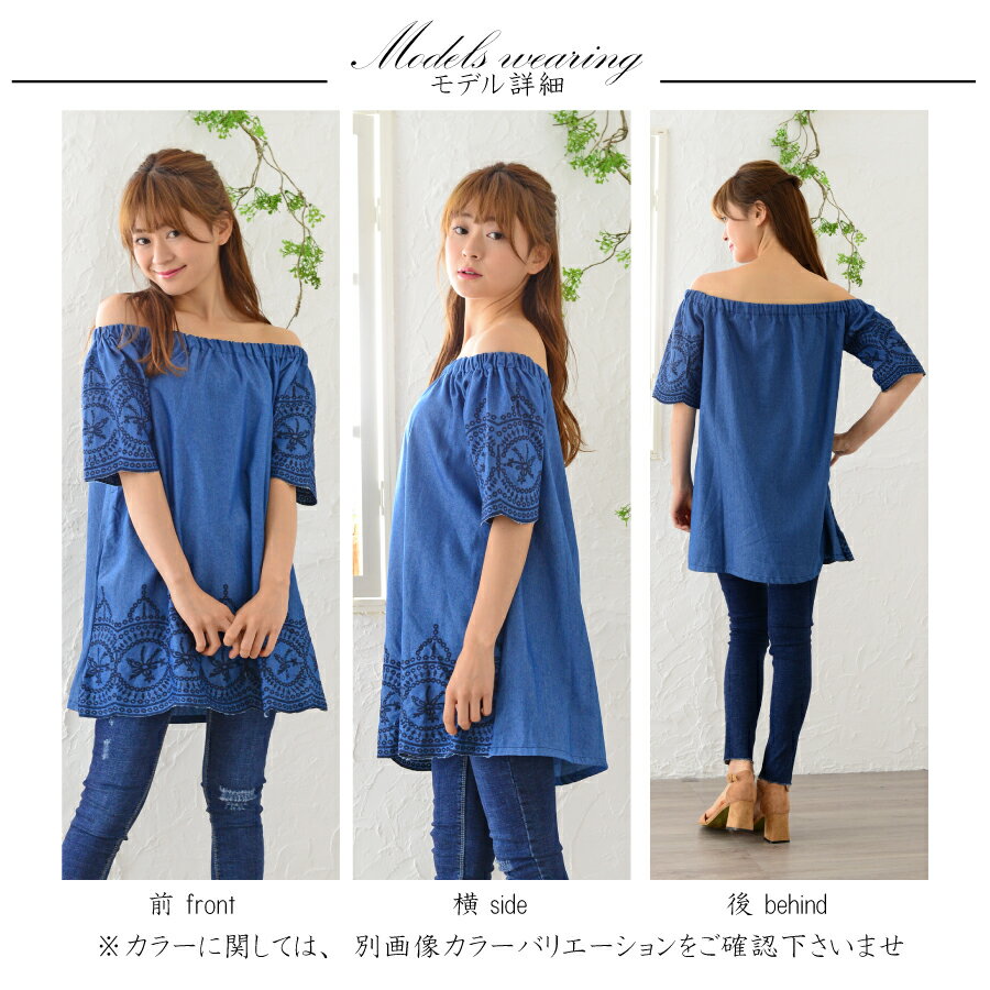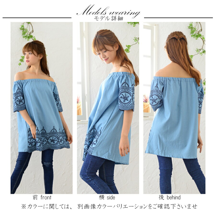 袖口と裾に施された刺繍がポイントです。オフショルダーでも着用出来で2WAYが嬉しいアイテムです。