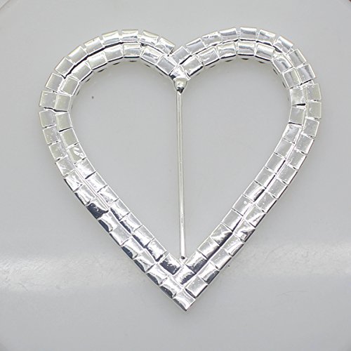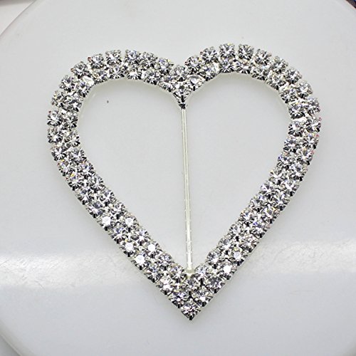 6pcs 60mm x 40mm Heart Shaped Rhinestone Ribbon Buckle Boutique Fancy Heart Rhinestone Chair Sash Pin for Arts and Crafts