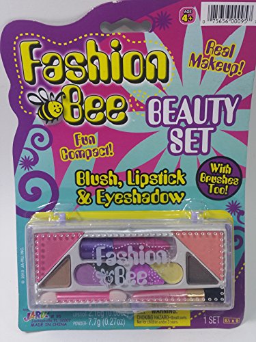 Fashion Bee Compact Beauty Makeup Set See Through Case (Lip Gloss-Eyeshadow-Blush Brushes)