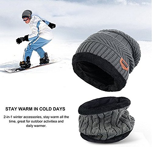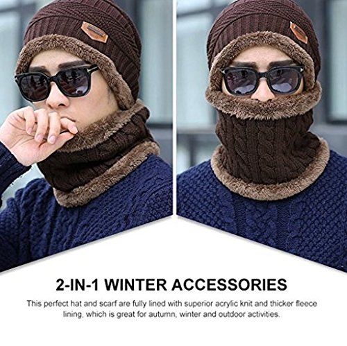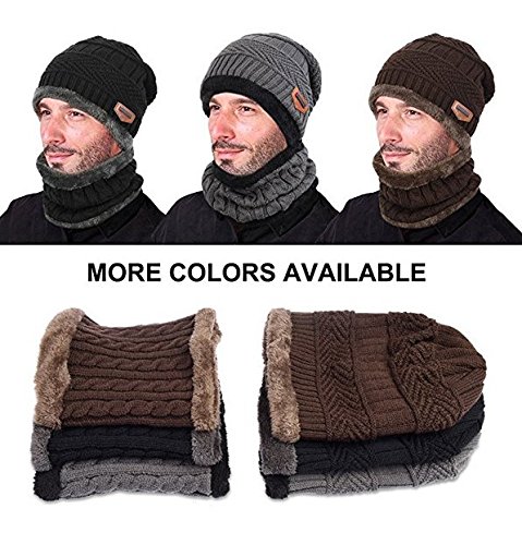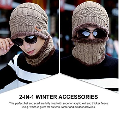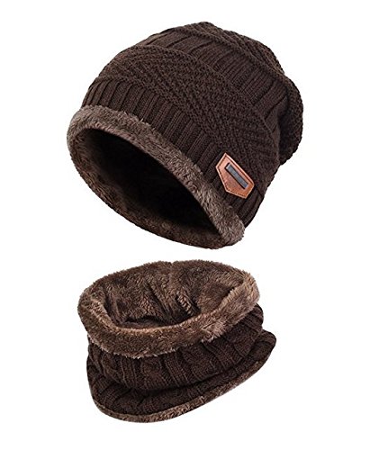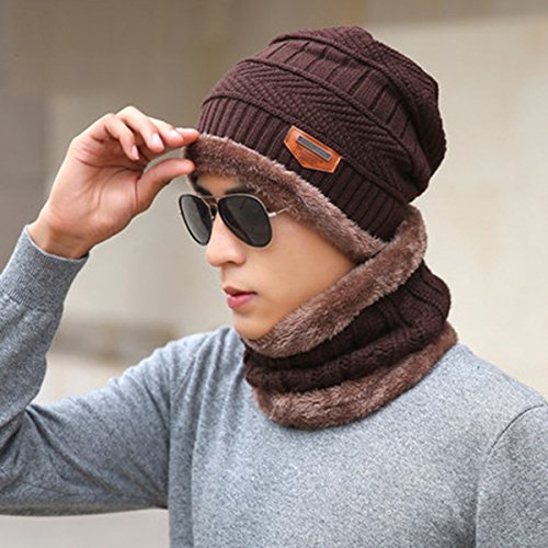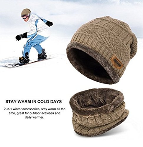 Material: Acrylic knit fleece lining Gender: men and women (Unisex) Style: fashion, leisure Season: autumn and winter Size: Hat Circumference: 22-23.2'(56-59cm), Height: 10.6'(27cm); Scarf Circumference:19.7-27.6'(50-70cm), Wide: 7.9'(20cm). One size fits most. Product Feature ☆ Top quality unisex warm knit cap. ☆ Thick and soft and can cover the ears during the brutal cold. ☆ Perfect for outdoor activities. Such as skiing, snowboarding or simple walks in the cold weather. ☆ Great comfortable fit. Stylish, trendy, slouchy, A must-have winter cap and scarf set! Package Included: 1x Scarf and Hat